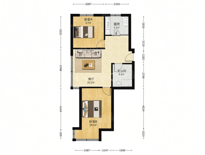2室2厅1卫,73.25m²,49万